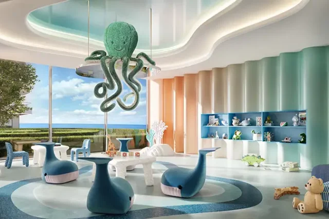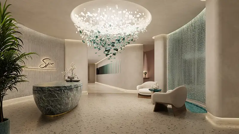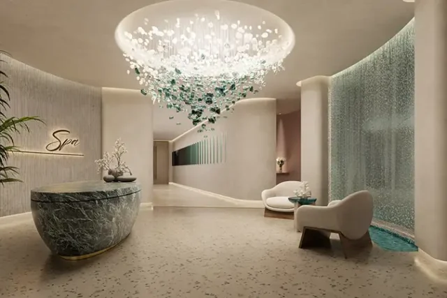 Walking through the facade brings visitors into a luxurious and welcoming atmosphere. The designers created it to invoke calmness along with awe when they are within the façade combined with touchable materials to form a smooth transition. Soft shades that represent the natural environment of the development include sandy tones and earthy greys paired with soft blues. Open-plan field spaces receive a design treatment through massive windows which eliminate the separation between indoor and outdoor space. The kitchens possess modern cabinetry installation and upgraded appliances which combine functionality with space elevation. The bathrooms duplicate boutique hotel suites because they include sophisticated fixtures with gentle illumination and textured decorating elements.